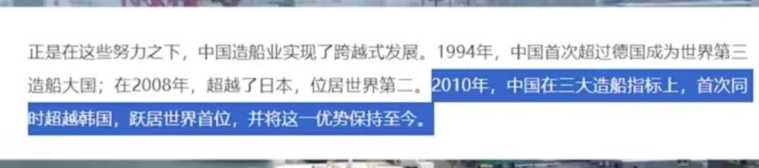 还有韩国支柱产业造船业。大家都知道,世界第一是无可争议的,但就在几年前,我们也被中国造船赢得过第一名。