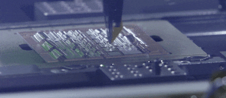 2、自动贴片:将IGBT芯片与FRED芯片贴装于DBC印刷锡膏表面;