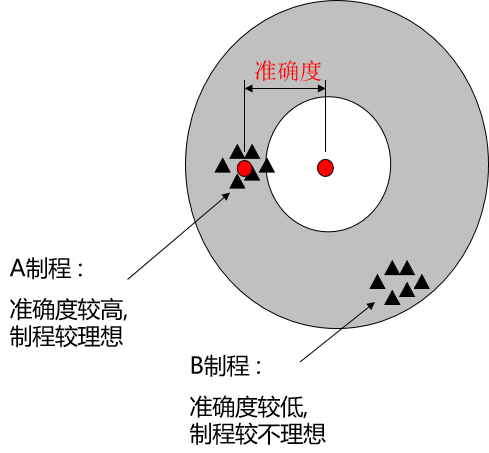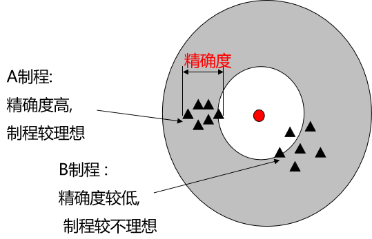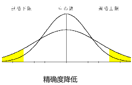 精确度Cp (Capability of Precision ) ,品质特性的散布范围大小或集中程度称为精确度,在制程上,散步范围(或称变异)越小,精确度越好,制程越理想。