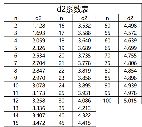 d2 : 请查阅附录d2系数表(d2取值附录表)👇