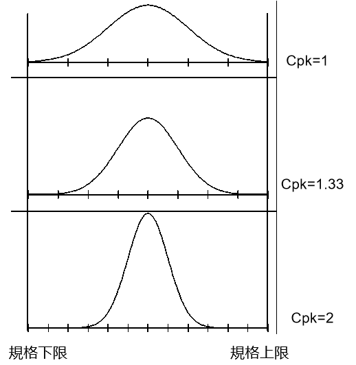 Cpk制程能力指数,是Complex Process Capabilityindex的缩写,是指在制程管制状态下,制程符合规格的能力。