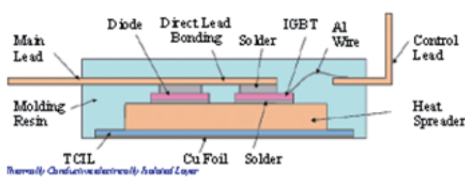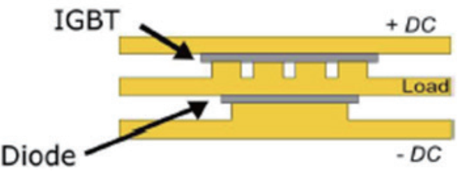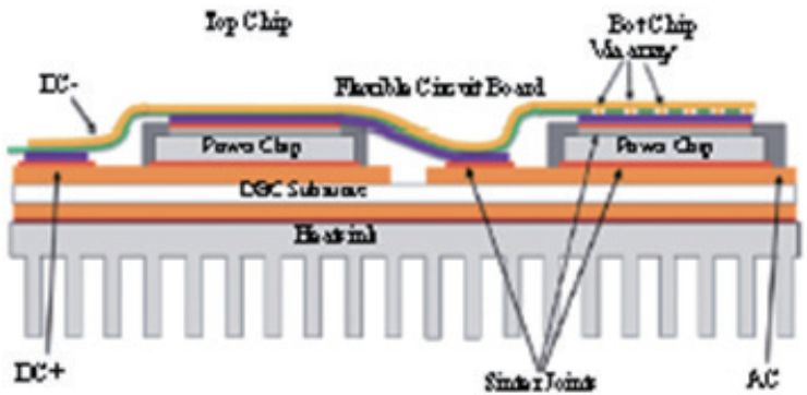 SKiN模块结构也是一种无引线键合的结构,它采用了双层柔软的印刷线路板同时用于连接MOSFET和用作电流通路。
