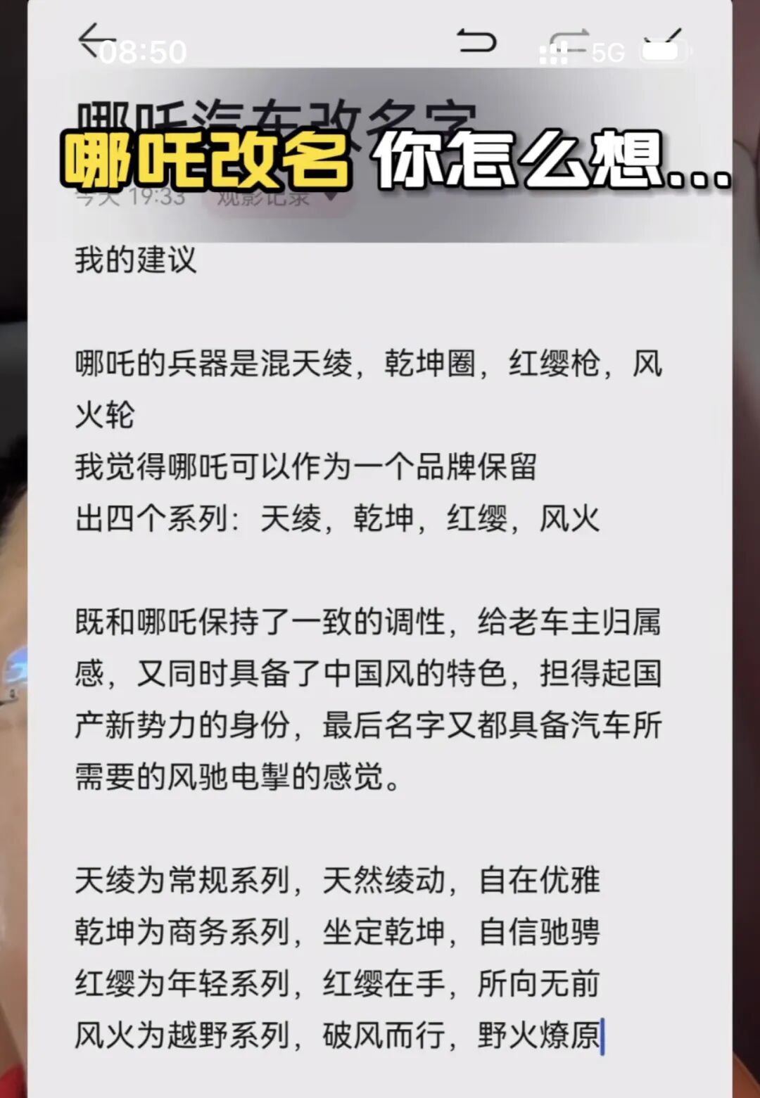 如今正积极为哪吒汽车寻求一个全新的名字,以期引领品牌迈向新的征程。这一举动,无疑彰显了张勇的开放与智慧,也让人们对哪吒汽车的未来充满了期待。