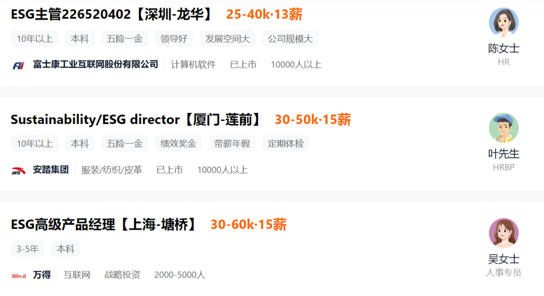 正因如此,对求职者来说,ESG领域的未来发展也很明朗。