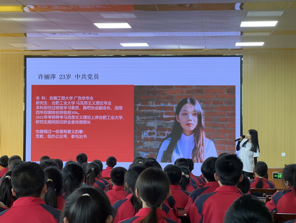 当谈到考研时,学姐分享了她跨专业考研的原因。学姐跨考马克思主义理论一方面是因为本科阶段在学习四门政治通识课的时候感觉自己很感兴趣,非常希望自己能够有机会深入学习。另一方面是因为学姐在大学兼职家教的过程中,慢慢找到了自己的人生理想,她希望自己能够成为一名好老师,希望能够用自己的力量去改变一代又一代人,让孩子们有正确的三观。学姐希望自己能够真真切切地走进孩子的内心之中,用自己的心灵去感染、去鼓舞、去激励学生追求自己的人生价值和人生乐趣,追逐自己的人生和梦想。