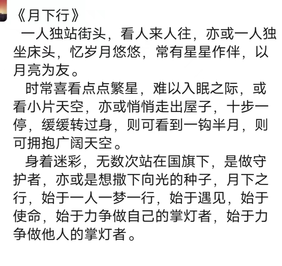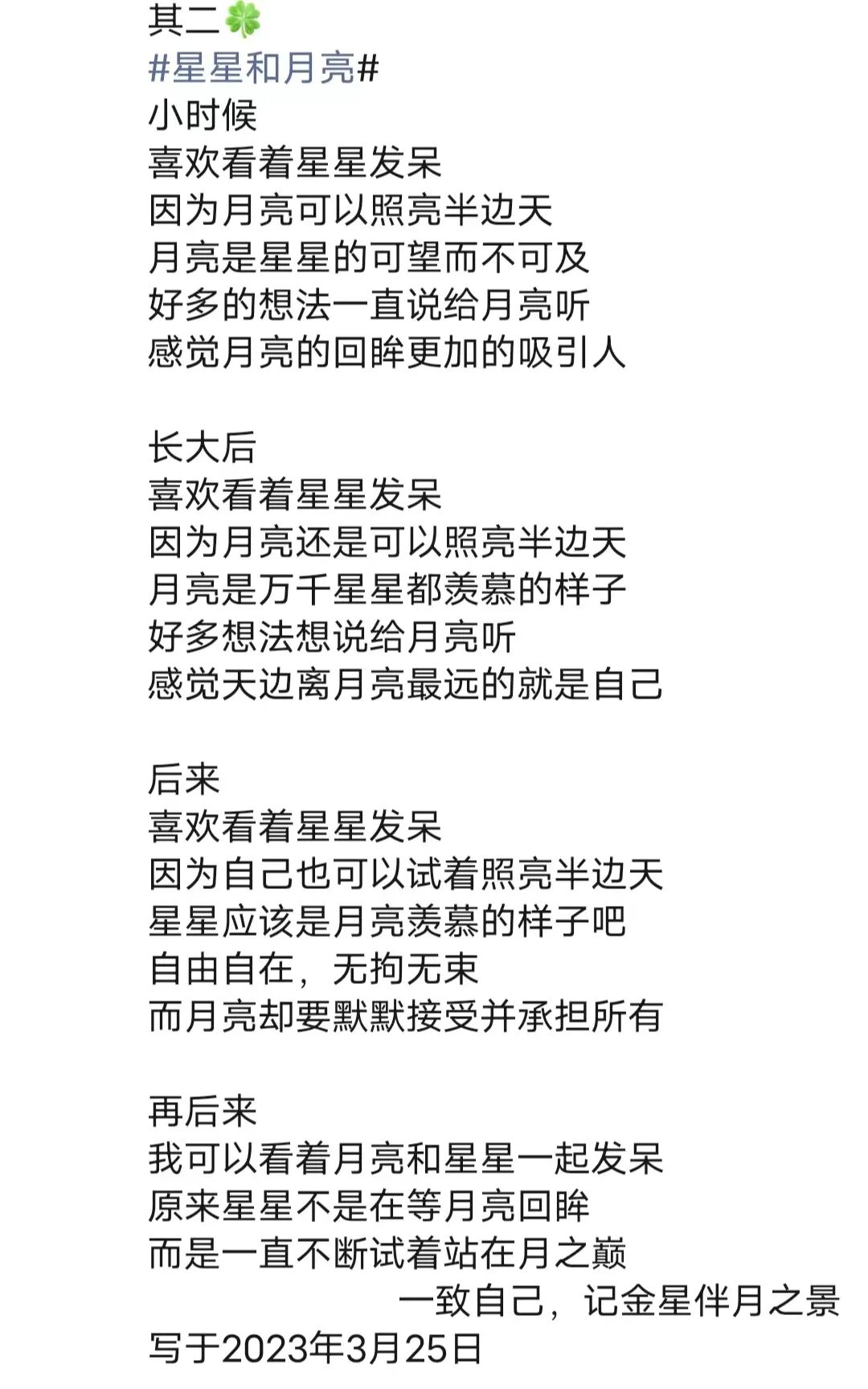 文采承殊渥,生花妙笔纸上显,流传必绝伦。我们的人生就像是边走边看风景一样,那一刹那的美好和难以忘却的事很多人都会记录下来。崔志静学姐就喜欢写诗来记录生活,经历的事或许不那么耀眼,但是那文采斐然的文字却让人离不开眼。