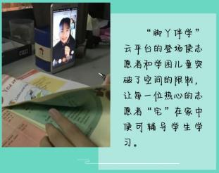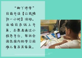 在繁忙的考研长跑和疫情压力下,学姐与更多的公益志愿者建立起了联系。偶然的一篇“八只脚丫”公益活动推文,让学姐再一次投身公益奉献,学姐见证了线上“脚丫伴学”小程序的出现,认识了很多来自全国各地有爱心的志愿者,和他们一起参与线上辅导,陪伴小朋友们快乐学习。