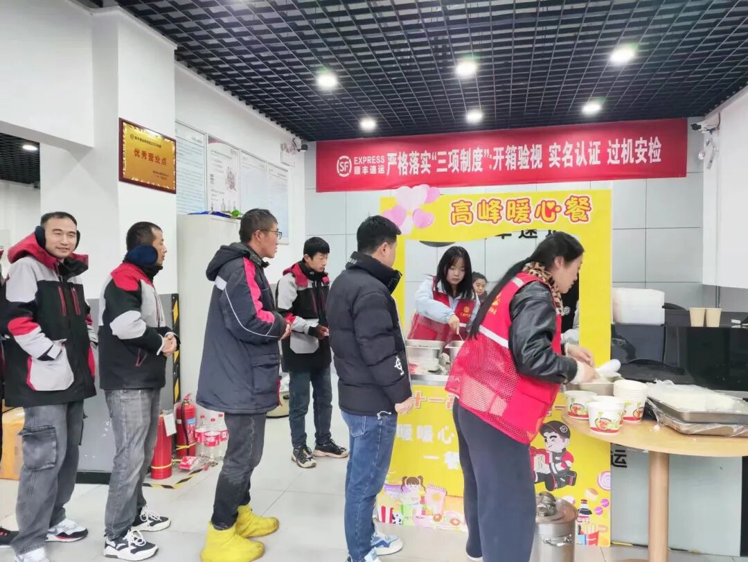 双11双12这种高峰期都是非常累的,我们需要做一些举措去提高小哥的满意感和积极性。今年双11地区工会对小哥进行了爱心送餐、送姜汤的活动。我的印象很深刻,那天天气很冷,工会将饭带到网点后,对网点小哥进行分发,小哥在门口吃饭的时候就很开心很活跃。在打饭的过程中来了外边的人,他们以为我们的饭是卖的,进门问我们一句“你们这个饭卖吗?”我们说“不卖,这个饭是我们公司为员工准备的”,当时瞬间感觉很自豪,公司没有忘记我们这些小哥在外边风吹雨淋的。在整个高峰期间,我们为了提升员工的满意度,早餐都是免费供应的,我们会为他们将饭采购好放置在点部,用保温电饭煲进行加热,这也提升了他们一定的满意度。在整个的高峰期,每一天我们都会为他们提供爱心姜汤,为他们暖身子,因为那几天天气的确比较冷,所以我们就将他们暖身子这个事给做起来了,也发放了护膝、耳套、手套,帮助他们度过这个冬天。