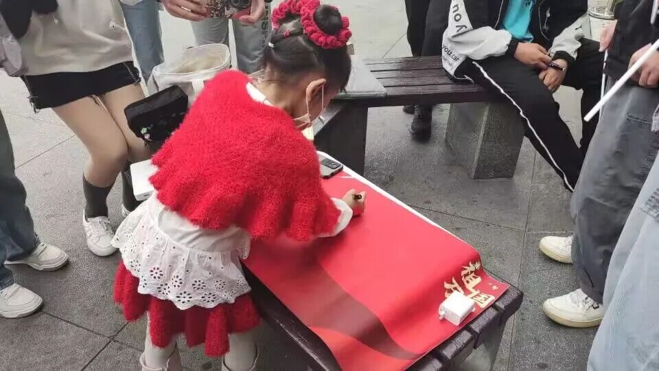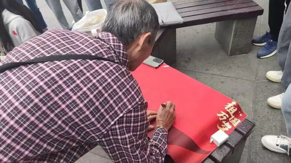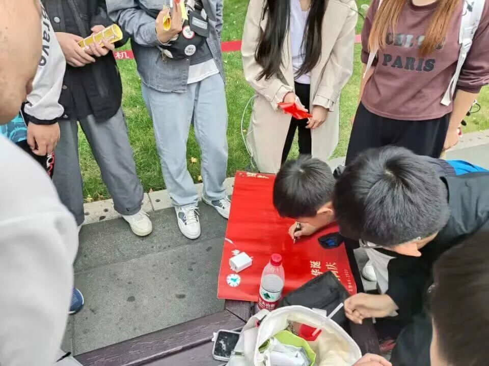 爱国之情,不分性别,不分年龄,更不分身份,国庆期间,不仅仅是志愿者们,就连路上的行人也想将心中的爱国之情一吐为快,纷纷在海报上写下自己对祖国的祝福!