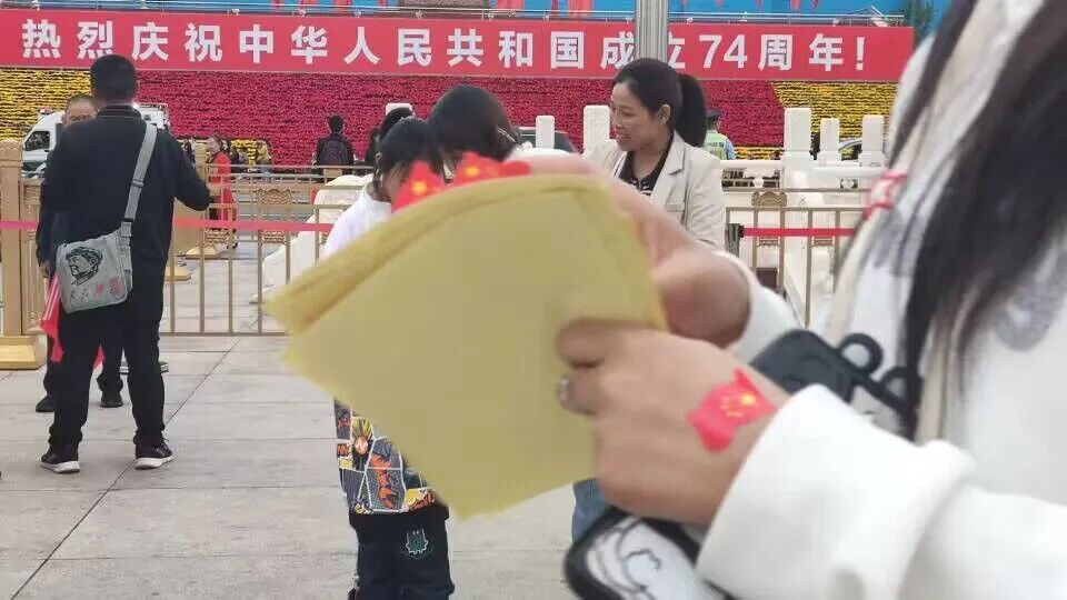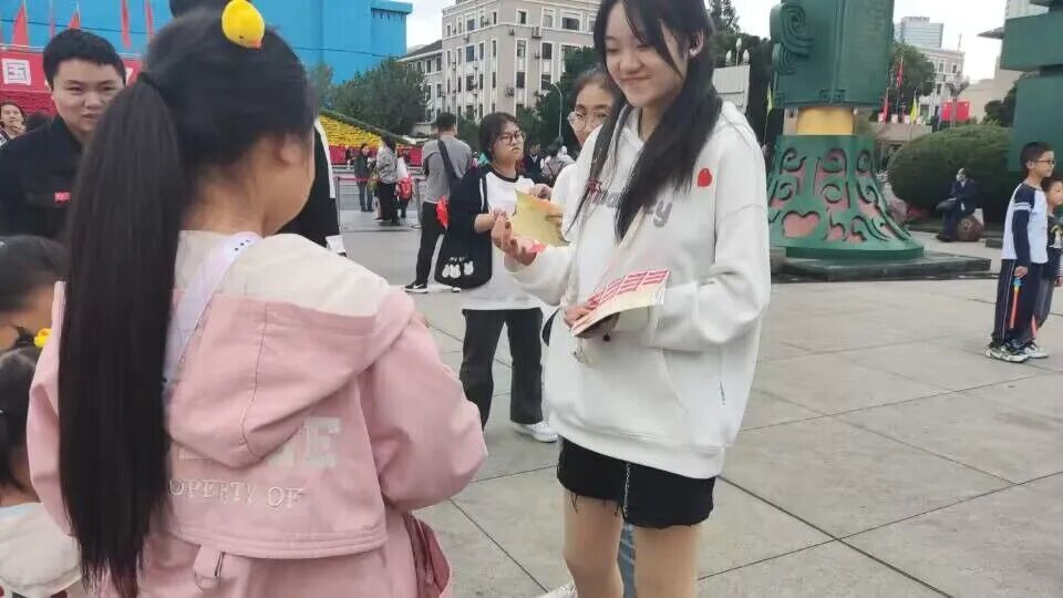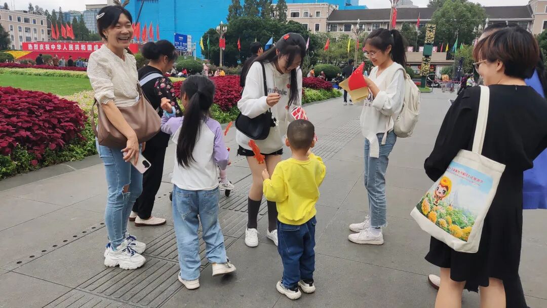 俗话说:“真心换真心。”反哺学子们给游人送上国旗贴纸,小红旗等礼品并送上亲切祝福的同时也收获了游人的洋溢着幸福的笑脸。
