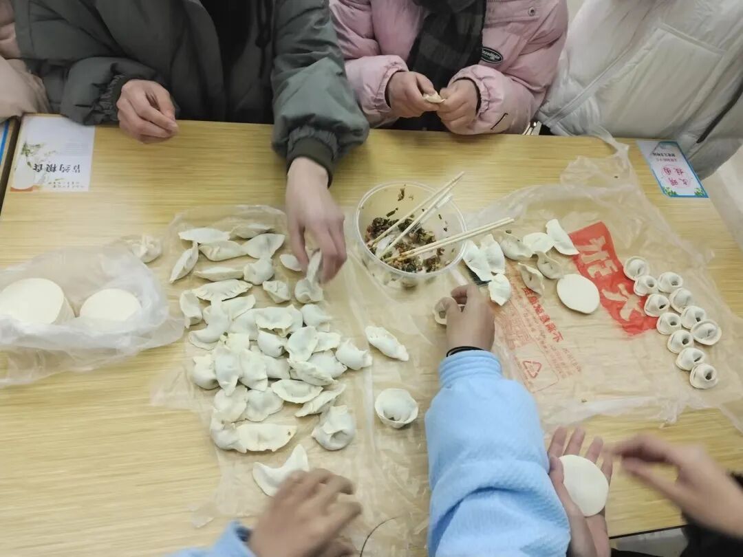 “饺子”是中国传统美食之一,寓意团圆、祥和,当大家凑在一起包饺子的时候,快乐在欢笑声中流淌,融进我们每个人的内心。小小的饺子如同一个个小包裹,承载着同学们的真心和对未来的期望,传递着温馨和睦和我们十八九岁的青春年少。