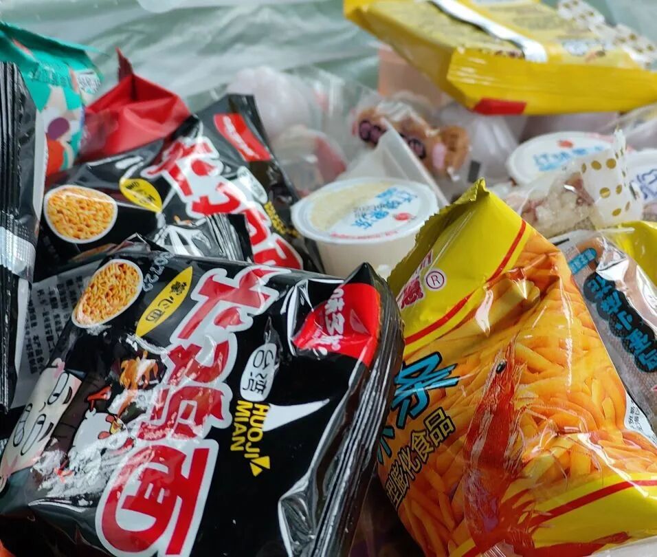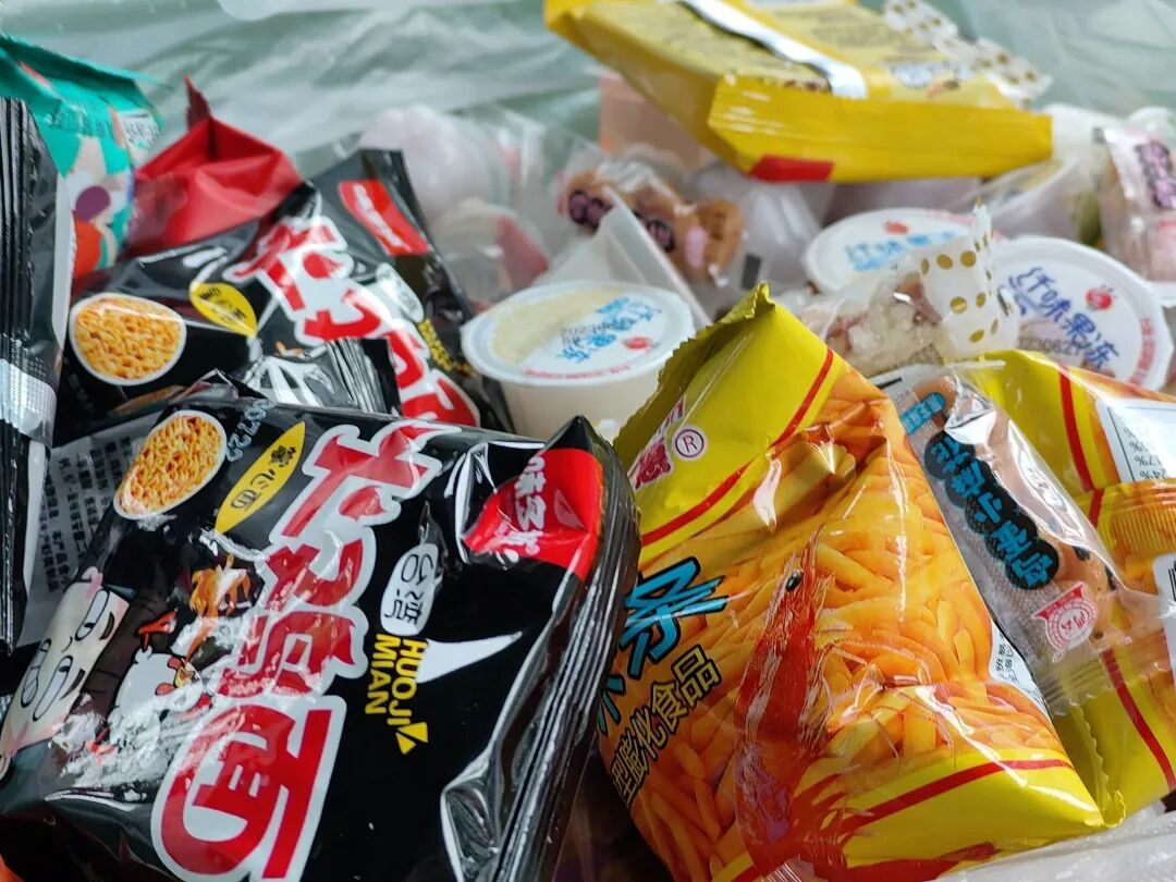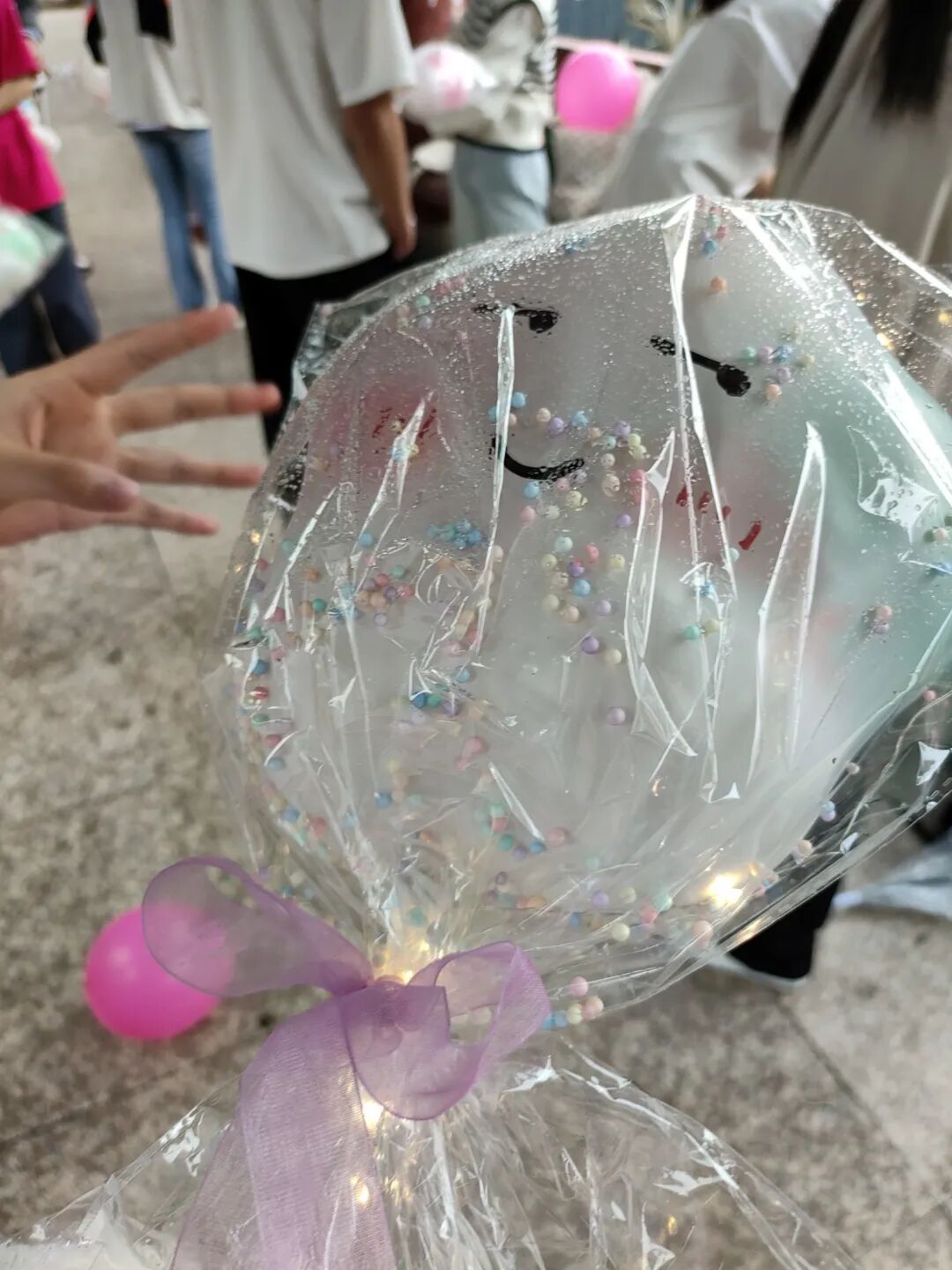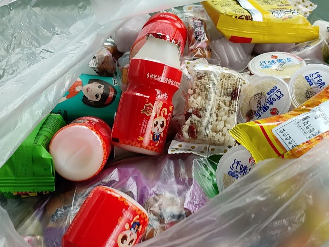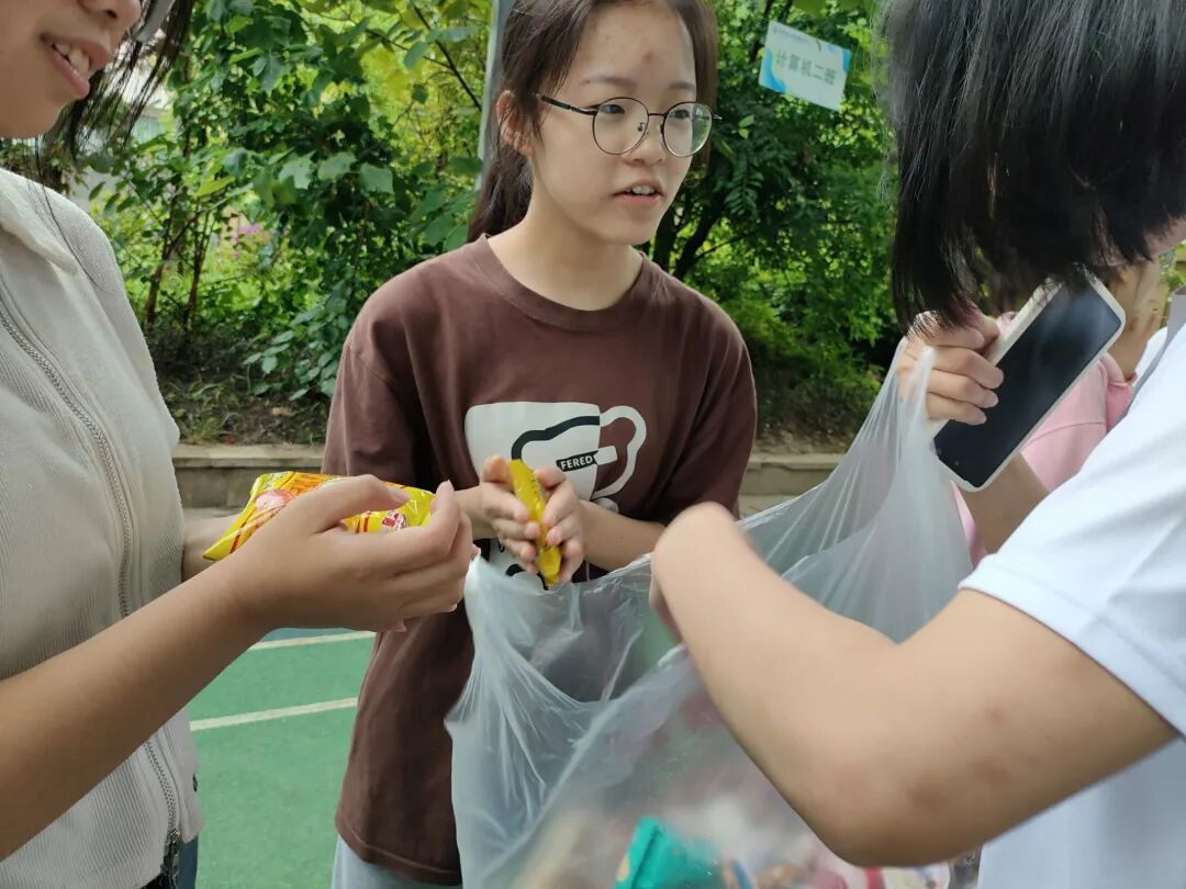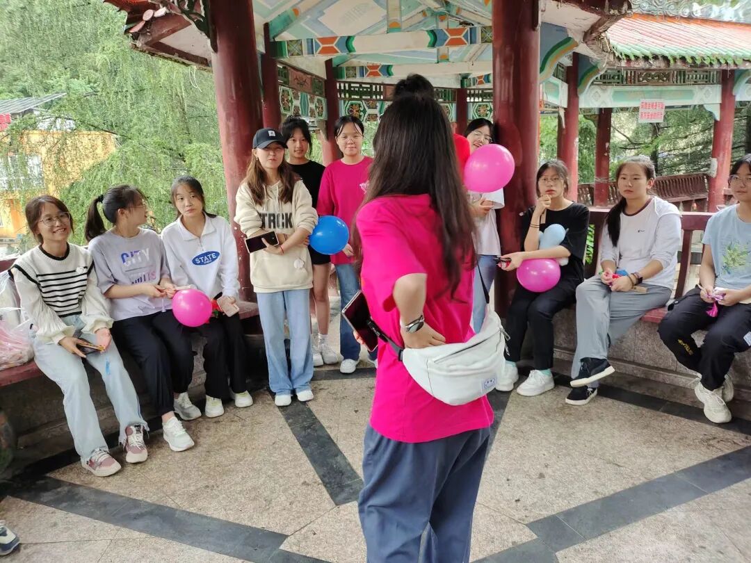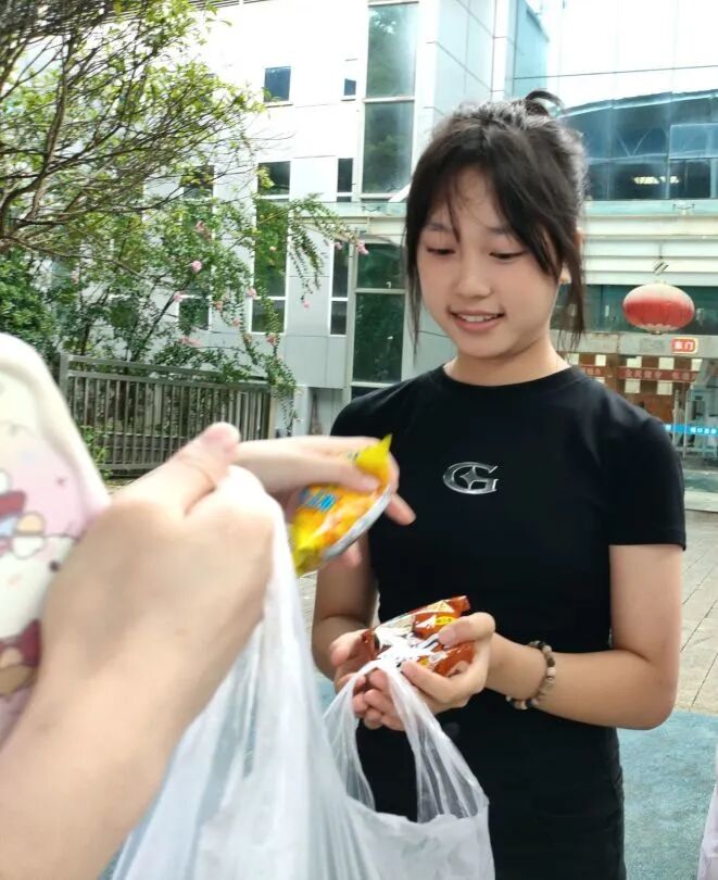 到老年公寓后,反哺干事给大家分发牛奶和小零食,稍作休息后,开始准备后续比赛的道具,打气球,剪丝带。