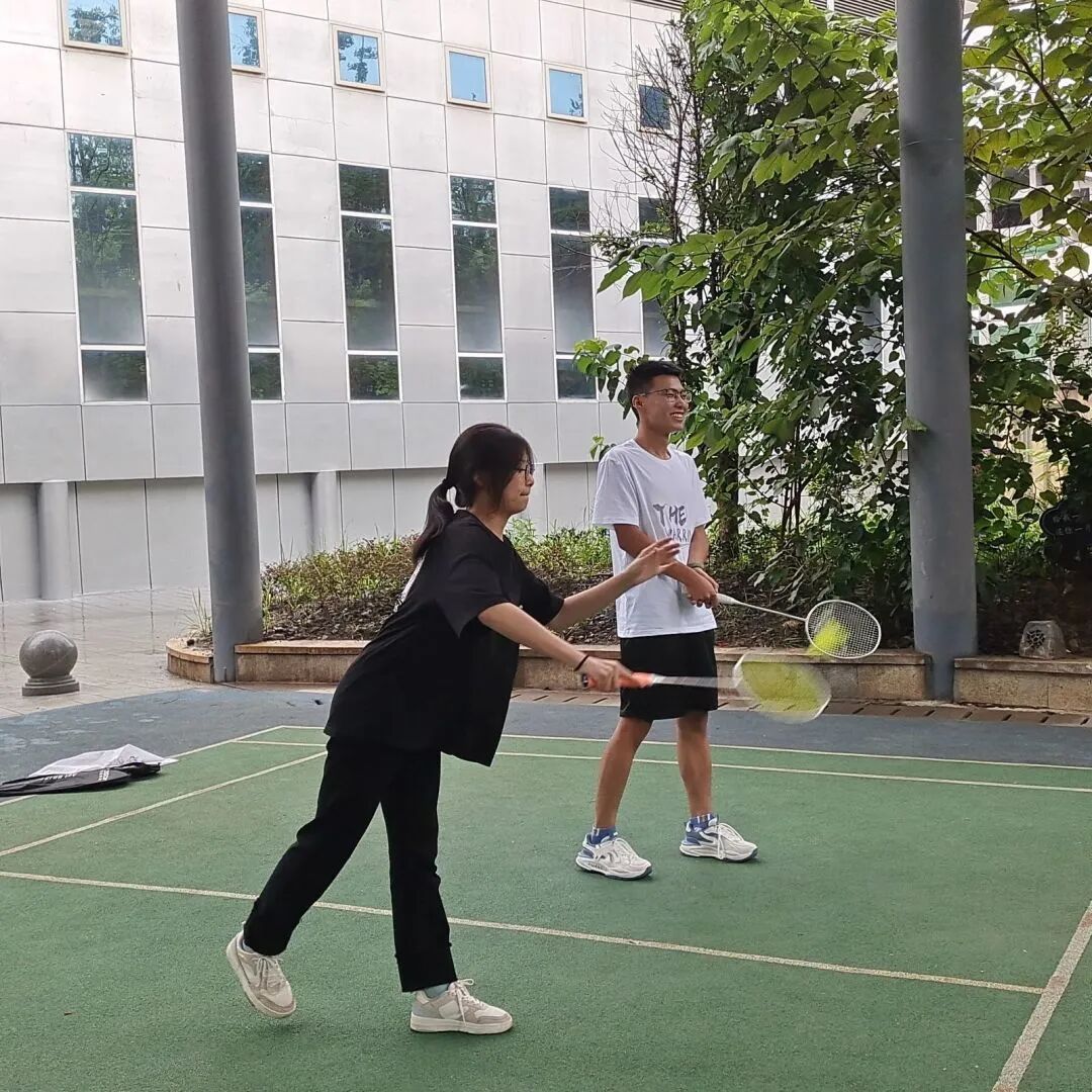 简单热身后就到了激动人心的羽毛球比赛了,学子中的体育健儿可不少呢,不少同学都自己带拍,一身运动装,好青春、好有活力嘞!“该怎么去形容你最贴切...”可以是专心致志、全神贯注、聚精会神。果然,认真的你们最好看,自信又阳光。谁会是本场比赛的赢家呢?