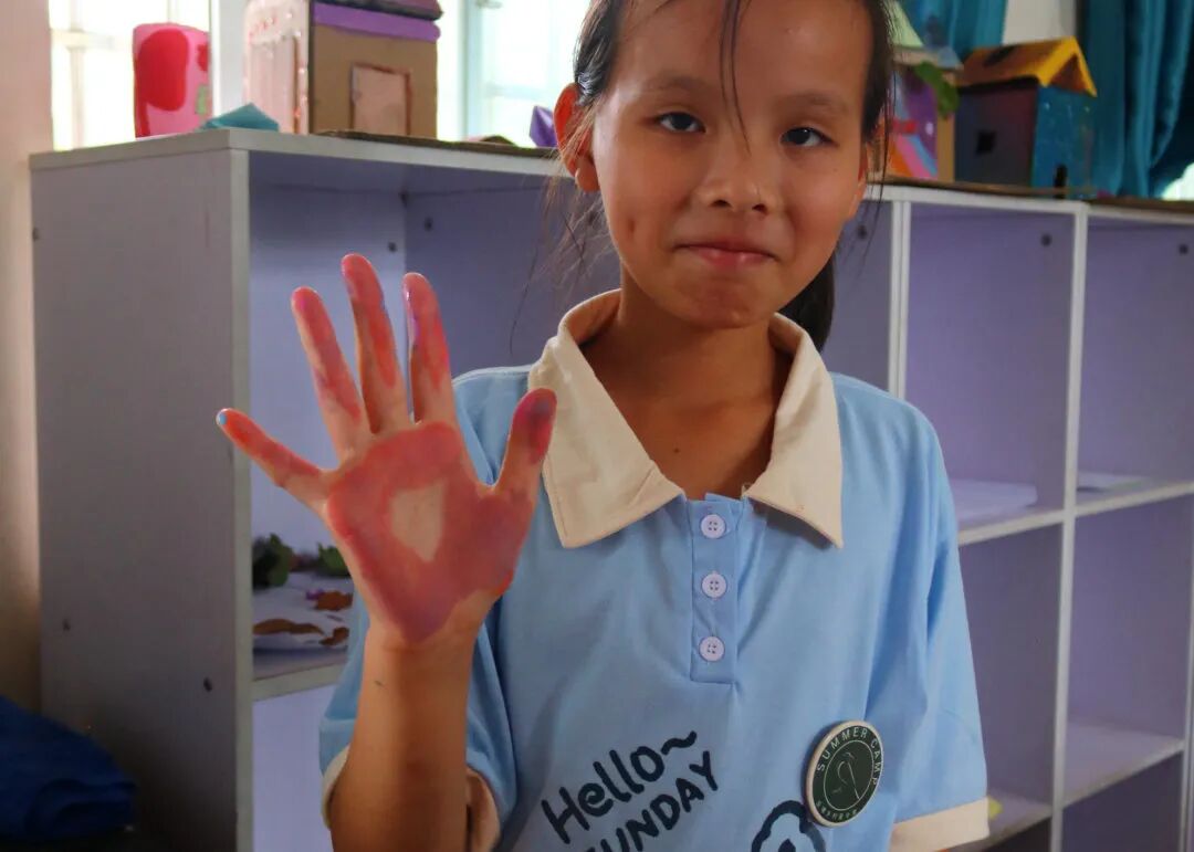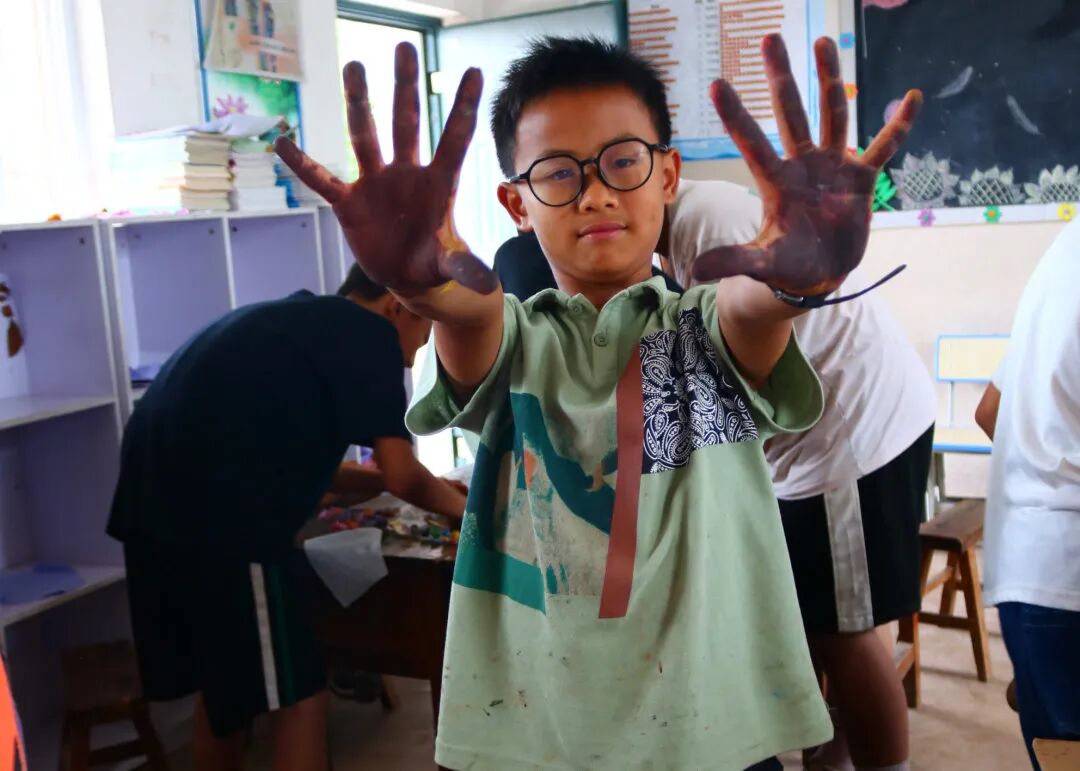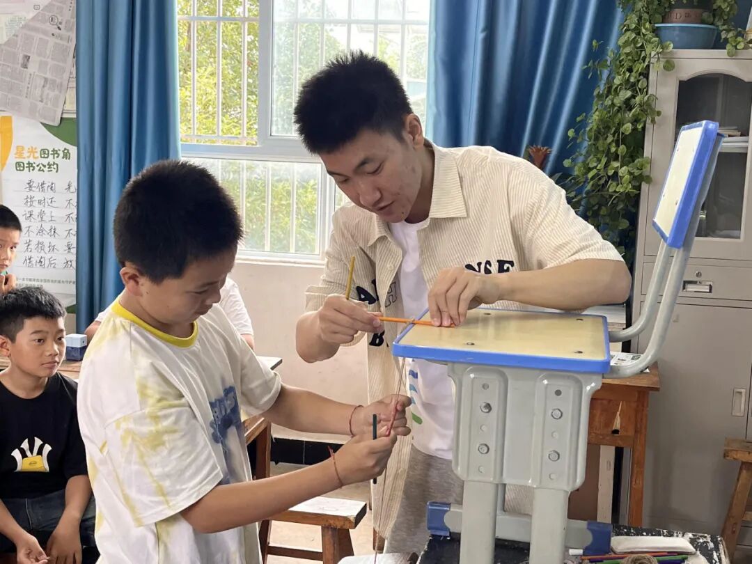夏令营中还开设各色特色兴趣班,如足球班、折纸班、绘画班等。在正式课程之外,志愿者老师希望能够给学生带来不同的体验,真正践行“玩中学、学中玩”这一概念。