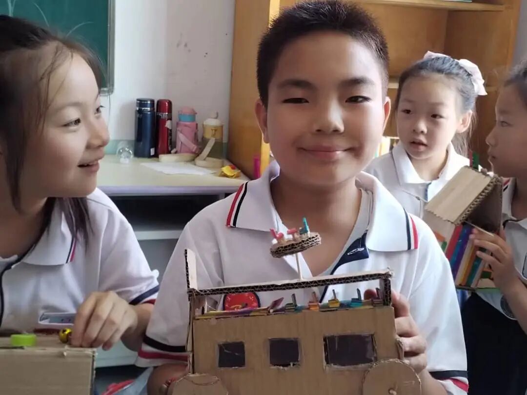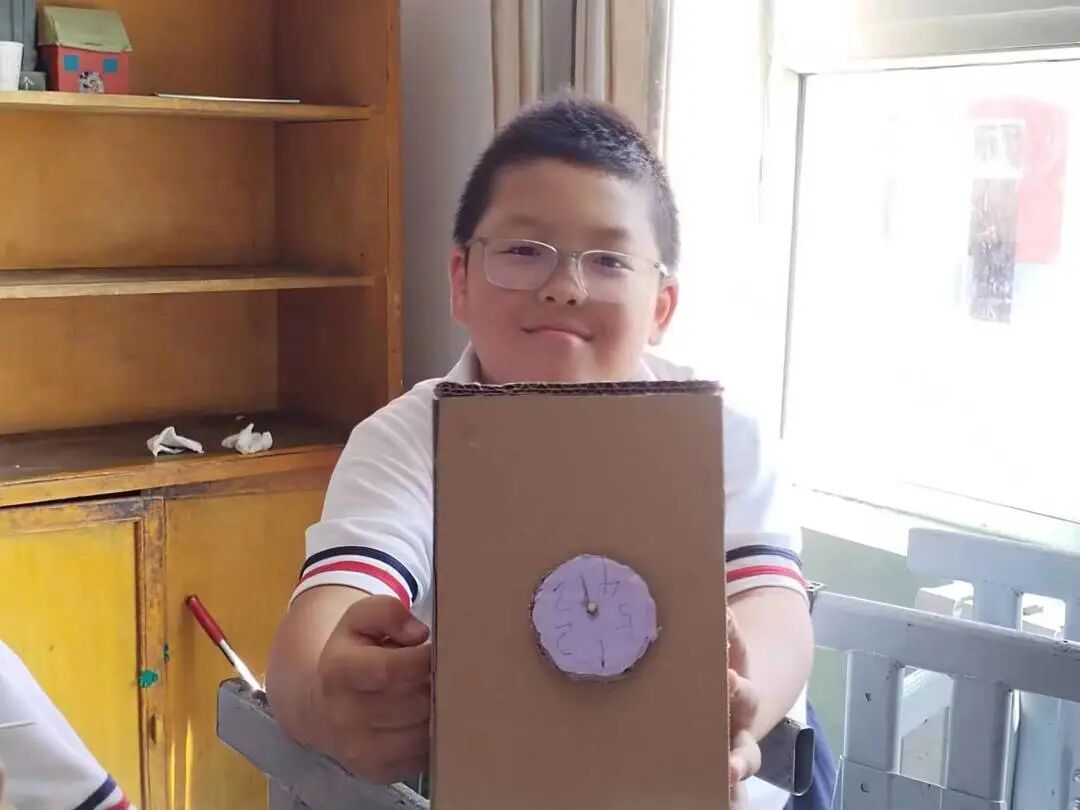 小洋:在所有的课程当中,我最喜欢的就是三一课程。我最喜欢做手工,家里有许多手工作品,如积木,自制箱子等。所有的都是用垃圾(可回收的)和一些钉子类的东西做出的。在作品中,队员们也贡献了很多,如破风号的红旗,让铃铛响的齿轮牙齿,箱子外面的彩纸,都是他们做的。作品是一起完成的,如果没有他们,我自己一个人也完成不了,过程中也有老师的帮助。