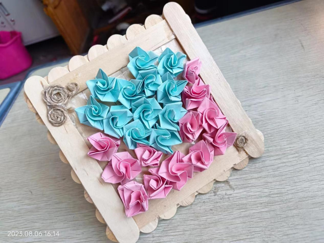 材料:雪糕棍,彩色卡纸,胶水,麻绳,双面胶