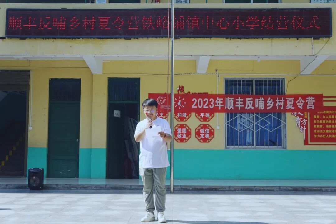 顺丰公益基金会的项目经理任国锋来到铁峪铺镇小学。结营仪式上,他致辞感谢为夏令营辛苦付出的志愿者们,看到满满的劳动成果,感到无比的欣慰,也希望小朋友们在这段时间能有自己的成长收获和知识体验。