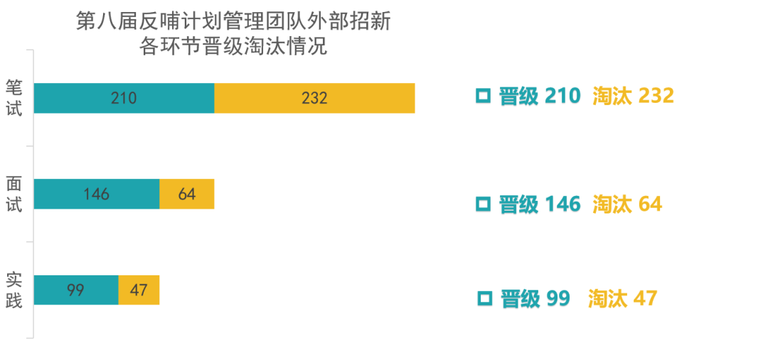 候选人们经过了笔试的洗礼、面试的磨砺以及实践环节的考验,每一轮都是一次严格的筛选,我们用心去考量每一个申请者的能力与潜力。在这近一个月的时间里,有的面孔展现出了超乎年龄的成熟与才华,有的则让我们看到了初生牛犊不怕虎的勇气与决心。先来一同回顾一下数据吧~