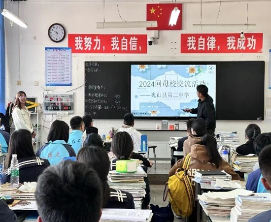 2024年1月30日下午,反哺学子相继来到龙山高级中学,同莲花学子们开展寒假回母校交流活动。