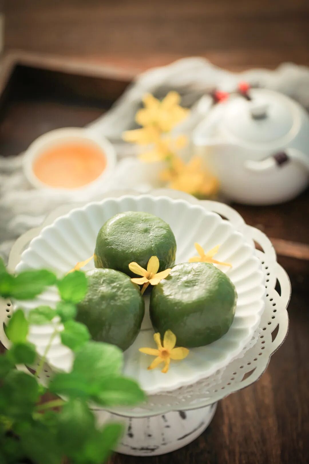 “捣青草为汁,和粉作粉团,色如碧玉”