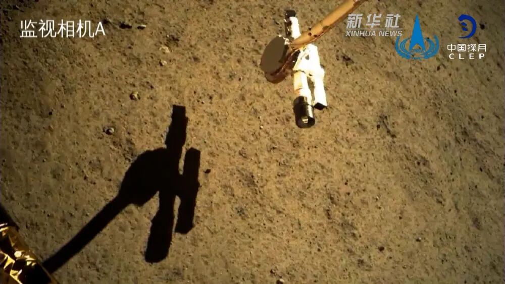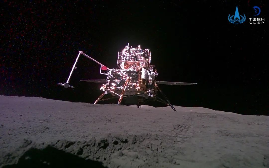 2024年6月3日,嫦娥六号携带的“移动相机”,自主移动并成功拍摄、回传着陆器和上升器合影。