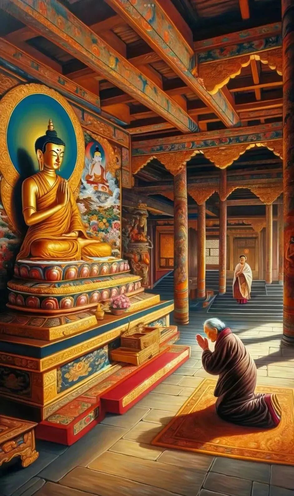 尼连河边有两名牧牛女子,一名难陀,一名波罗,素日里看见释迦牟尼如此虔诚苦修,心中甚是感动敬佩。这时见释迦牟尼已愿受愿,忙选择肥壮的母牛,入河洗浴干净,挤取乳汁,蒸成乳糜,盛了满碗,捧到他面前,礼拜奉献。