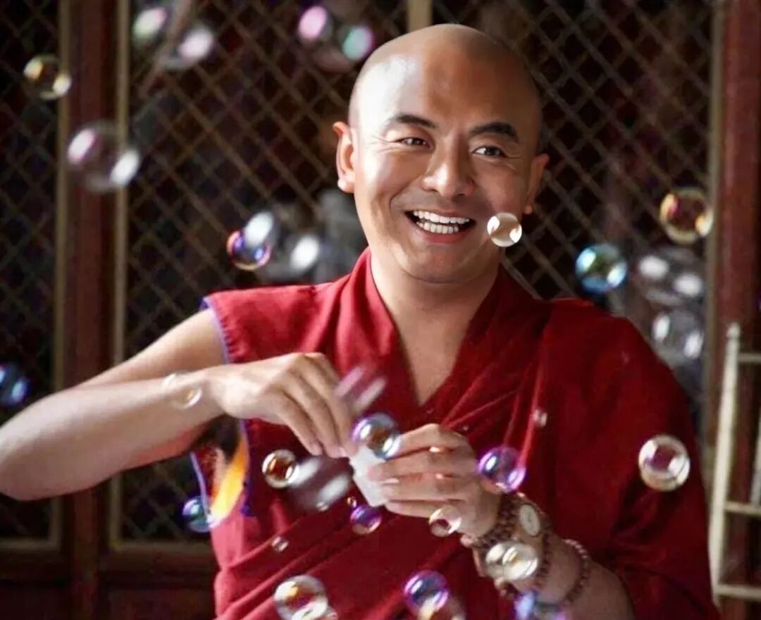 仁波切:再慢一点。OK!很好!把你的注意力,放在脚上,放松的。很好!(大家为阿尼衮嘎的示范鼓掌)