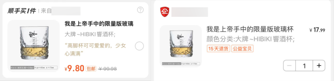 “享受优惠”之余,一些消费者发现,“顺手买1件”的产品无法查看商品详情,如果退出付款页面去搜索这些顺手买的商品,发现价格并没有便宜多少。比如,号称从99元降价至9.9元的玻璃杯,商城的原价只要17.9元,原价488元的项链在商城的正常售卖价格只有29.8元,而且详情页面没有任何“原价488元”的介绍。