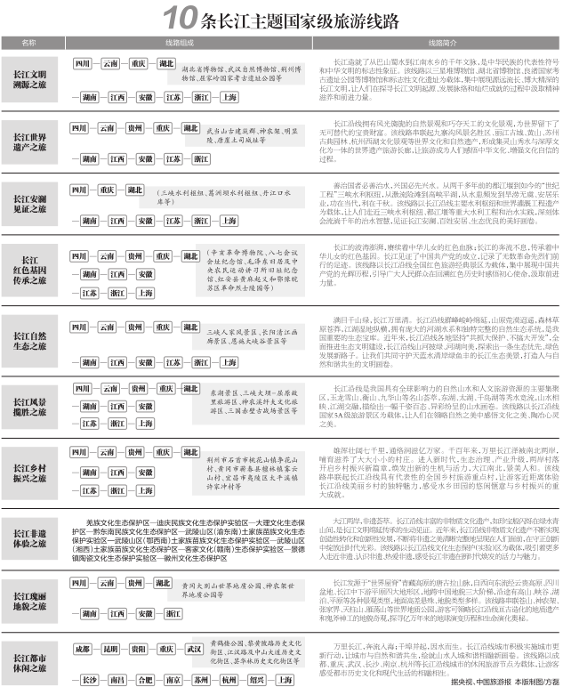 文化和旅游部近日推出10条长江主题国家级旅游线路和《长江国际黄金旅游带精品线路路书》。