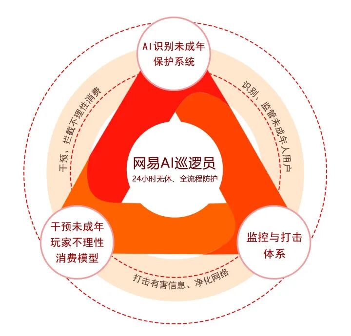 为守护未成年人科学、健康游戏,网易游戏加大AI技术在未成年人保护方面的应用,有效管控未成年人游戏时长及充值消费。今年暑假,网易游戏正式推出“AI巡逻员”,24小时在线巡查、识别使用成年人账号登陆游戏的未成年人玩家,第一时间拦截管控。而针对疑似未成年人的不理性消费行为,AI巡逻员能够做到提前预测,在消费发生前就及时阻止。据统计,试运行至今,AI巡逻员已成功辨别出使用虚假认证的未成年人超千万并纳入监管,干预上万个未成年人使用成人账号的高额消费。