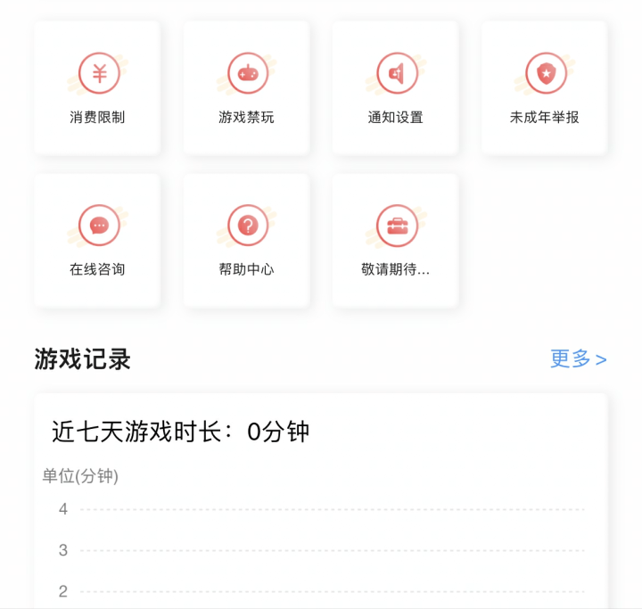 绑定孩子账号后,家长能够随时随地通过手机,查询和管理孩子的游戏时间和消费情况。比如在国家规定的未成年人游戏时长、消费限额基础上,家长可以根据自身需要,在平台上点击“游戏禁玩”、“消费限制”按钮,限制孩子的游戏时间和消费。