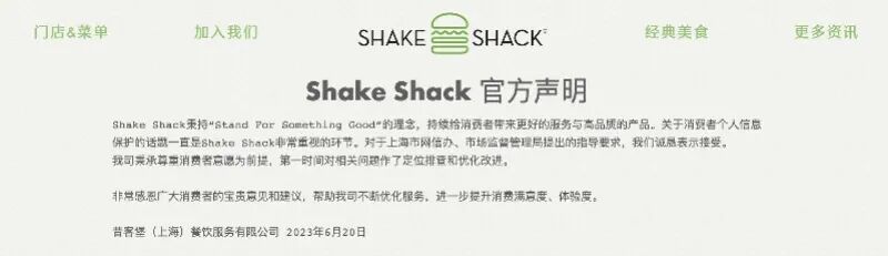 据此前报道,今年6月,Shake Shack刚因过度收集个人信息被约谈。据上海市网信办披露,Shake Shack因存在频繁诱导索取用户手机号、诱导消费者提供精准位置信息、频繁弹窗诱导注册会员、诱导消费者关注公众号等过度收集个人信息行为,被上海市网信办、市市场监管局约谈。6月20日,Shake Shack通过官方渠道发表整改声明,表示已第一时间对相关问题作了定位排查和优化改进。