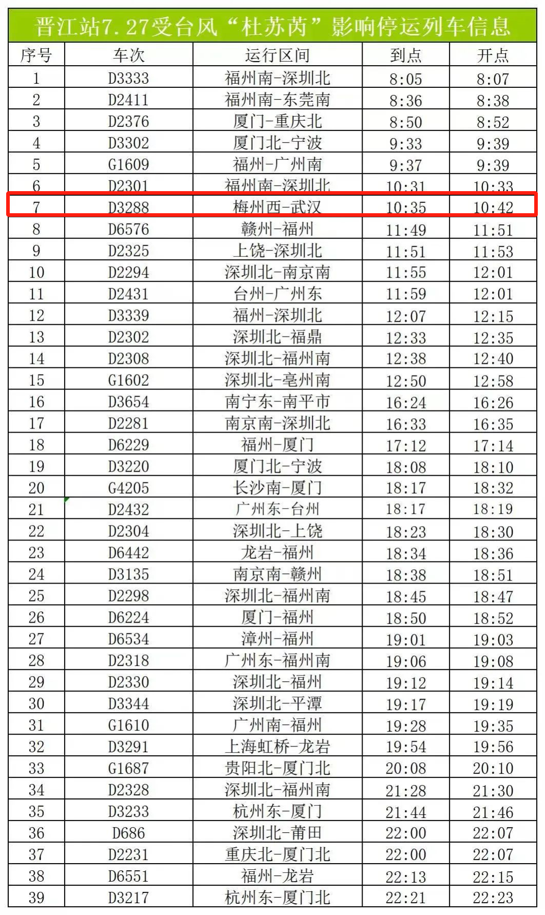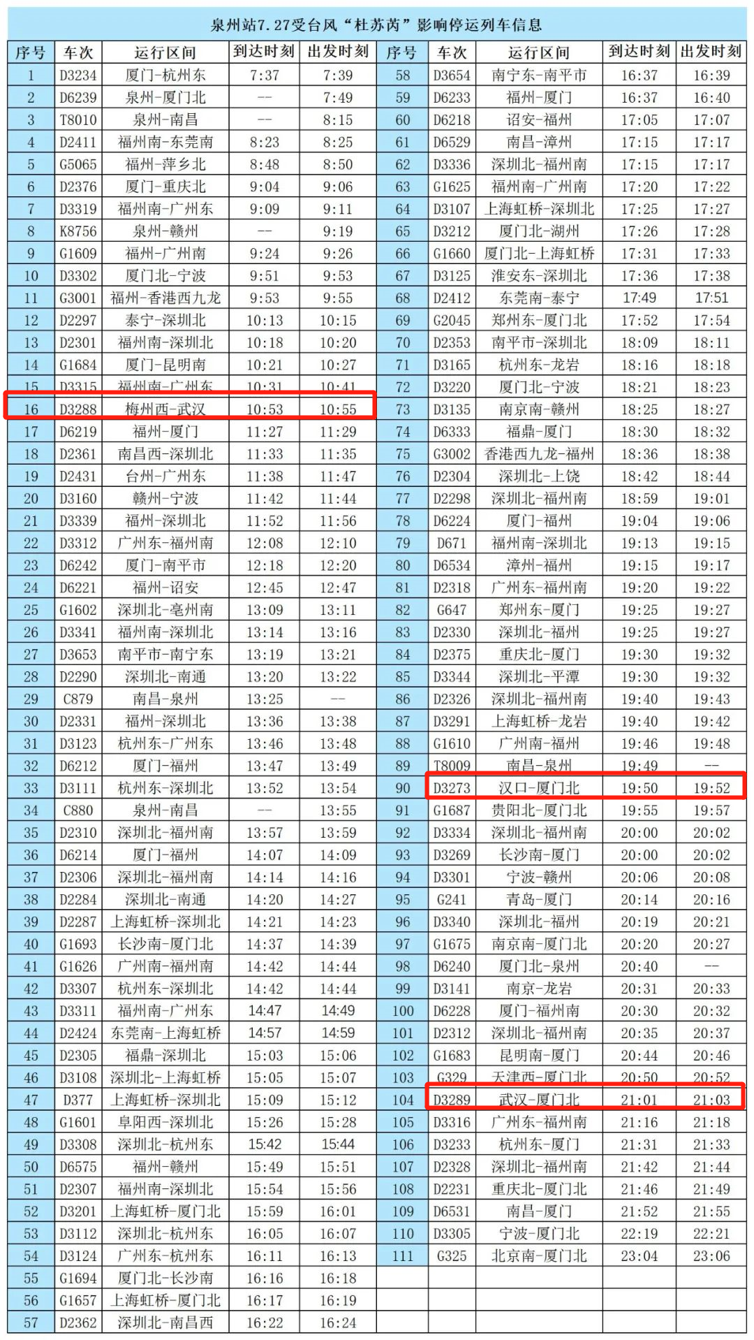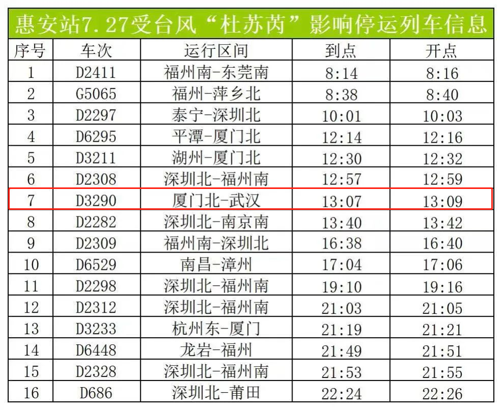 全国多地停运列车信息表