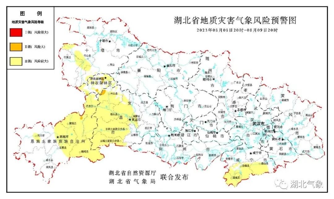 湖北省自然资源厅和湖北省气象局8月8日联合发布地质灾害气象风险预警: