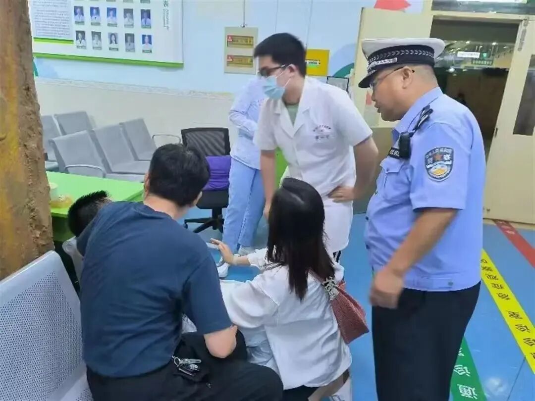 武汉民警抱着小孩跑进急诊室(武汉东湖公安提供)