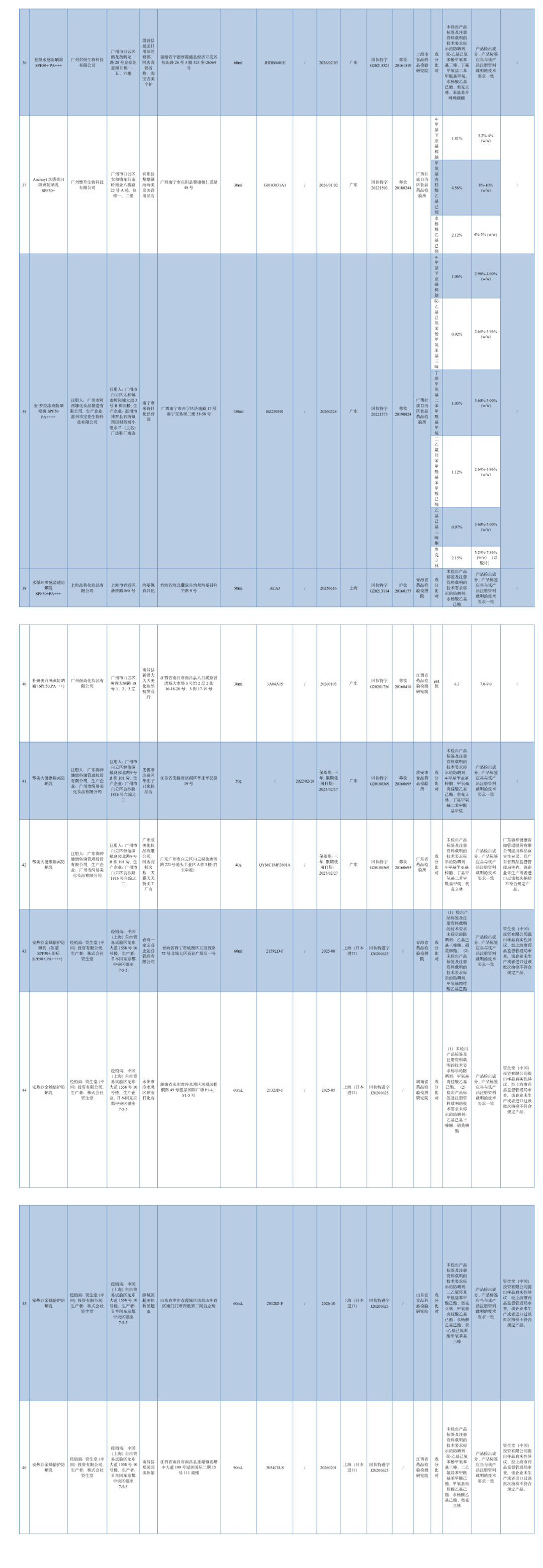 根据相关规定,国家药监局要求上海、湖北、广东、甘肃省(市)药品监督管理部门对上述46批次不符合规定化妆品涉及的注册人、备案人、受托生产企业、境内责任人依法立案调查,责令相关企业立即依法采取风险控制措施并开展自查整改。