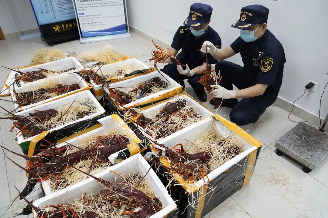 此非孤例,前不久,厦门机场海关对入境航班行李进行监管时,发现一名旅客携带的密封泡沫箱X光机图像异常,箱内疑似装有活体海鲜。经开箱检查,关员发现箱内有6只活蹦乱跳的鲜活大龙虾,净重5.8千克。随后,该关依法将该批龙虾扣留送检。