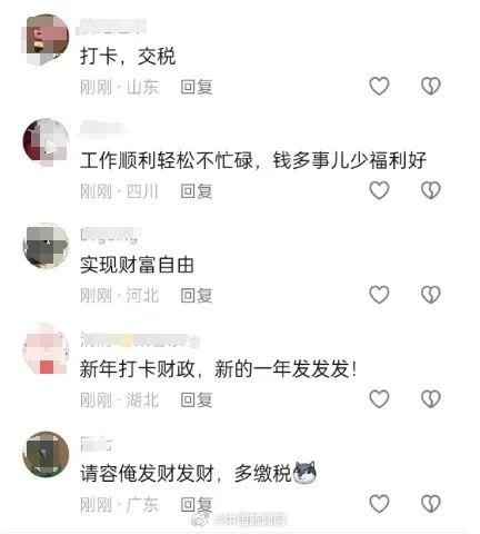 13日晚,财政部官方视频账号发布一则打卡财政部的动画短视频,14日在财政部官方账号评论区,网友纷纷打卡接财运。动作很统一!
