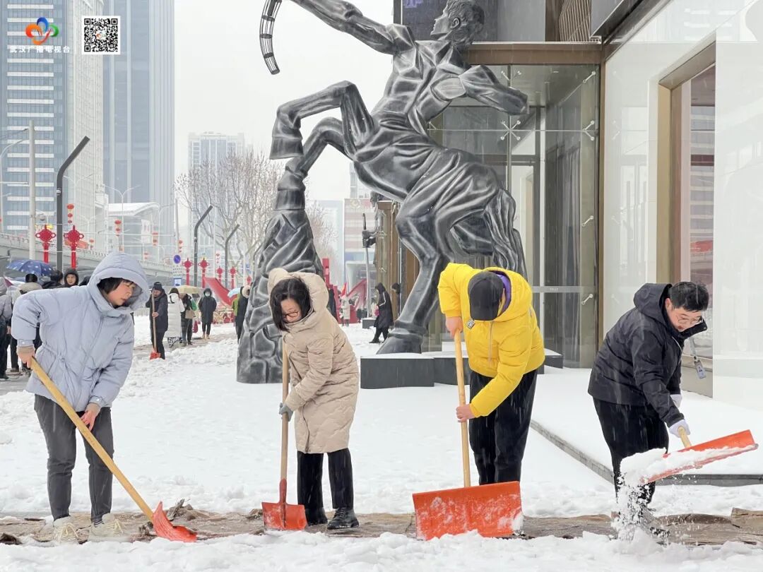 北湖街道发动下沉单位、文明单位、共建单位等30家单位,组织街道社区干部、城管环卫、安保、下沉党员、居民党员、志愿者、商户等400余人,在辖区开展扫雪除冰行动。