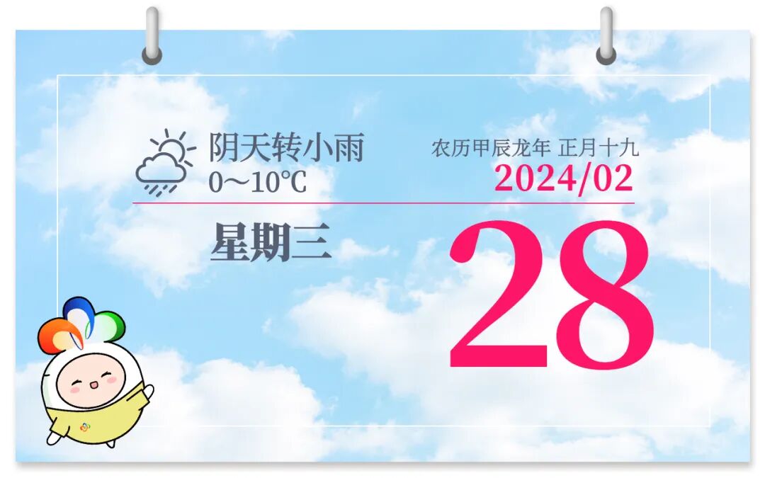 2月29日08时-3月1日08时,鄂西南、江汉平原南部、鄂东南小雨转阴天,其中西部高海拔地区有雨夹雪或小雪;其他地区阴天到多云。最高气温7~12℃,最低气温鄂西北0~2℃、其他地区2~6℃,偏北风3到4级、阵风5到7级。