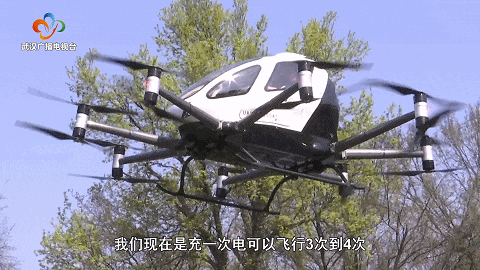 亿航智能集团大中华区总裁 侯垠佑:我们现在是充一次电可以飞行3次到4次,快充的话是一个小时,可以飞行半个小时左右,滞空时间我们根据航线制定,一般情况下3到5分钟,这也是作为观赏和体验最好的时间段。