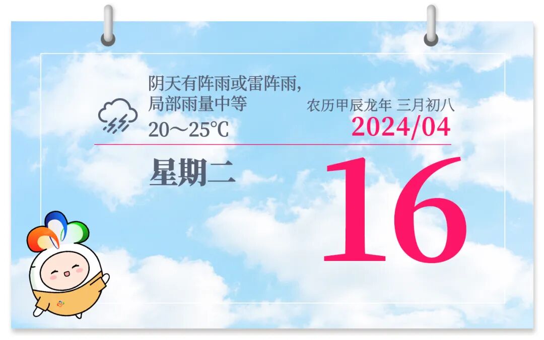 16日天气:阴天有中阵雨或雷阵雨,局部大雨