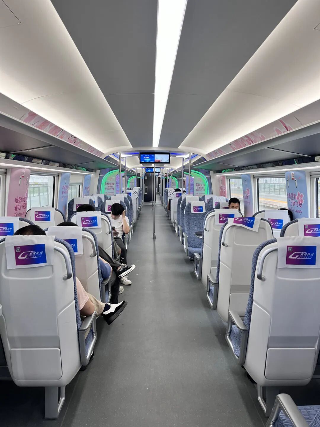 新城快线列车不定车厢、席位,旅客像坐地铁一样,走进任意车厢选择空位即可就坐。