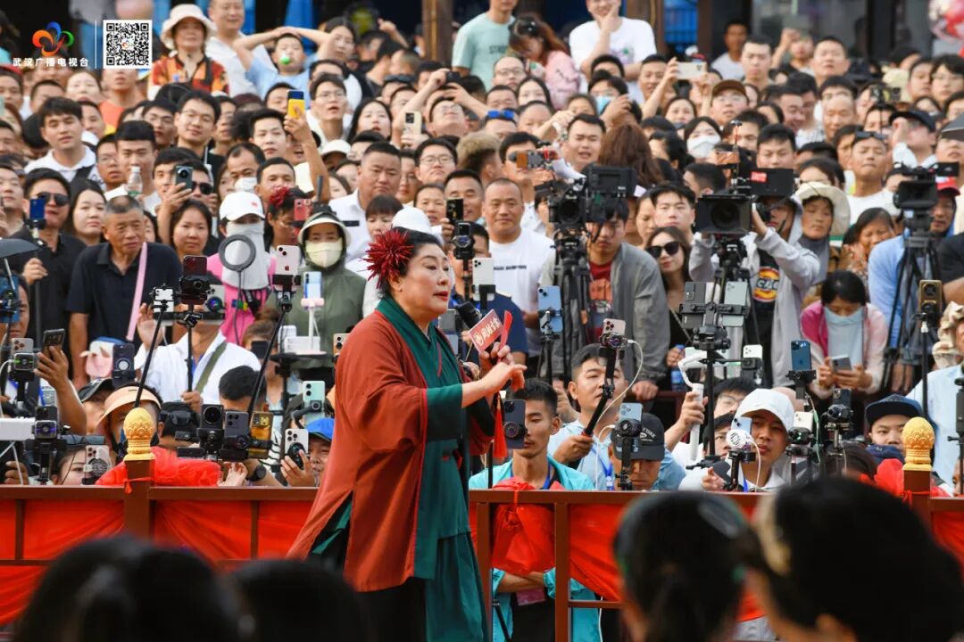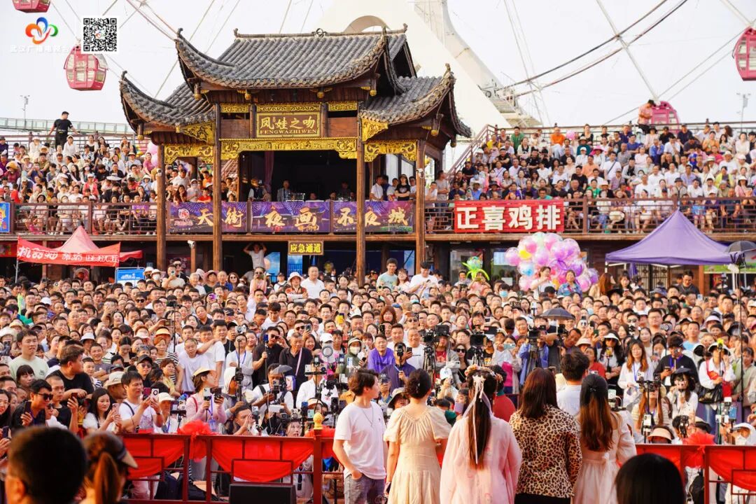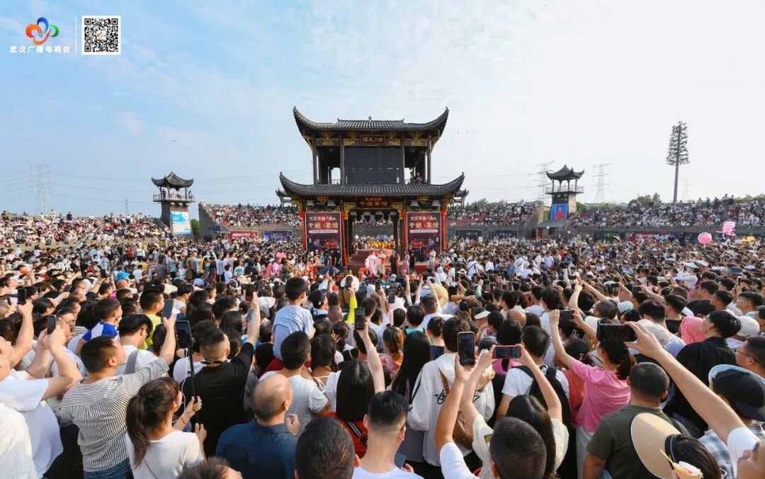 “现场人特别多,由于来得比较晚,靠近舞台的位置已经满了,本来以为白来了,但舞台上方的大屏幕实时直播,画质特别清晰,就算在微远一点的观众席位观看,也很过瘾。”来自新洲区旧街街的梅婆婆在孙女的陪伴下,第一次来到景区游玩。