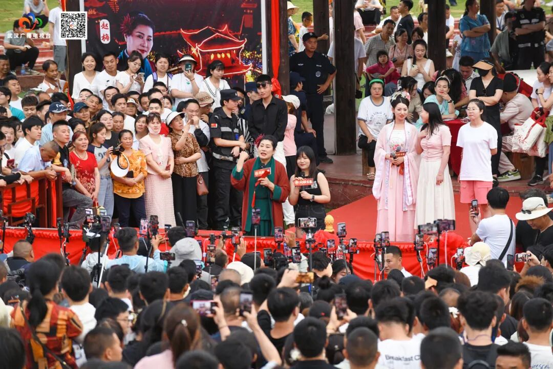 “妹娃儿要过河,是哪个来推我嘛……”6月9日下午5点30分,随着恩施女嘉宾的登场,“干娘”一曲《龙船调》将现场氛围点燃,引得台下观众纷纷合唱并举手与女嘉宾互动。