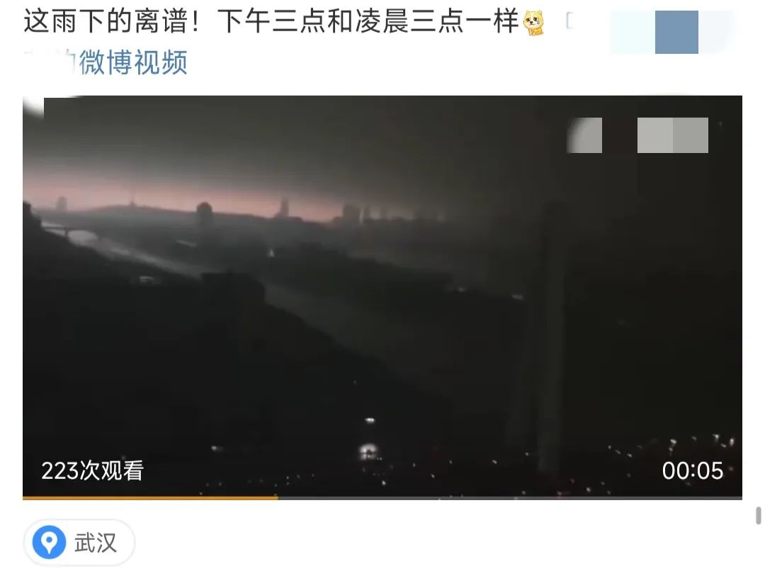 4月3日下午武汉市电闪雷鸣、大雨倾盆