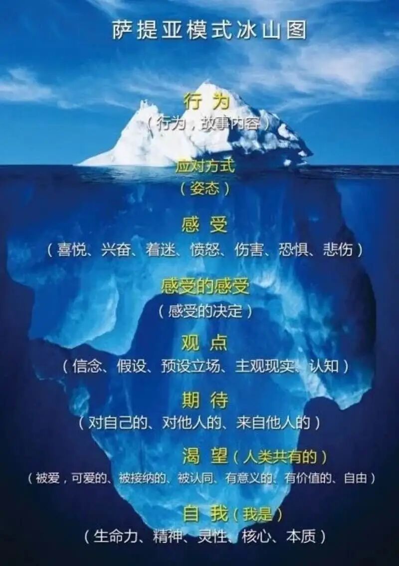 ❤️ 我的情绪梳理逻辑来源于这个萨提亚情绪模式冰山图。