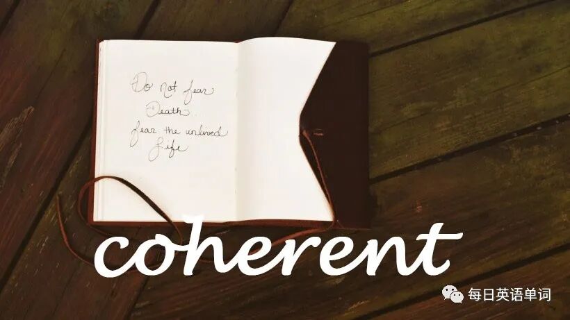 adj. 一致的; 连贯的; 条理分明的; 清楚明白的; 词根:cohere[v.附着;粘着]+ent……的→coherent粘在一起的;一致的,协调的 |