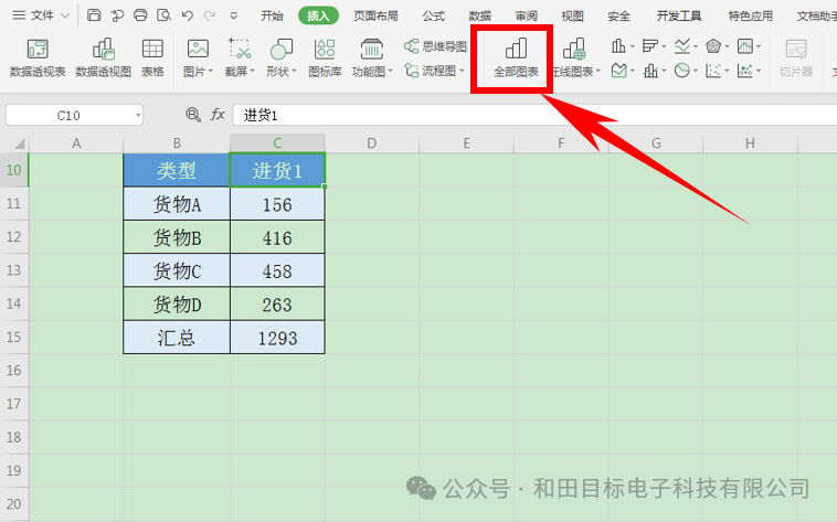 在Excel表格当中,用户将表格数据制作成图表时,通常会选择柱形图,折线图或者扇形图,那么为了更加直观的显示出数据之间的差距,我们通常还会选择利用直方图来展现数据的变化,那么在Excel表格当中,该如何插入直方图呢,一起来学习一下吧。 首先,在表格当中插入一张表格,单击工具栏【插入】下的【全部图表】,如下图所示: