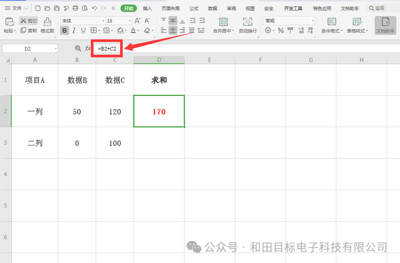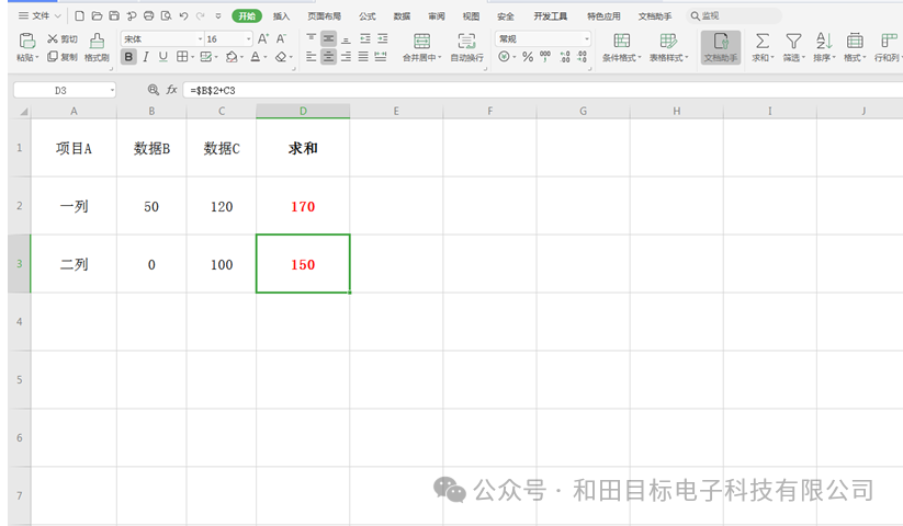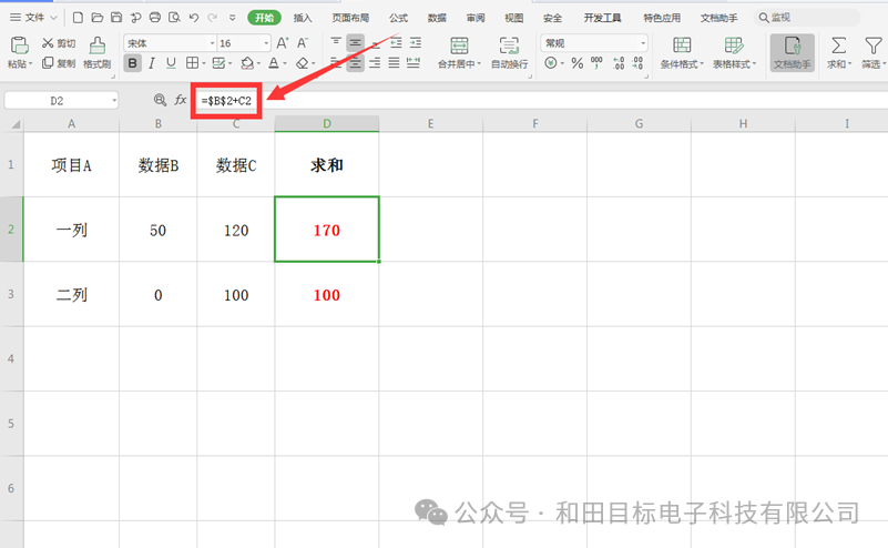在我们平时使用Excel表格时,经常需要引用某个表格的数据,如果采用的公式向下一个单元格拖动时,则被引用的单元格也会变动,而这就是相对引用。那么如何做到无论如何拖动公式,被引用的单元格都要保证不变呢?这就要引入“绝对引用”这个概念了。它是如何操作的呢?下面我们就来学习一下。打开一个Excel文档,我们看到D2单元格就是B2和C2对应单元格数据之和: